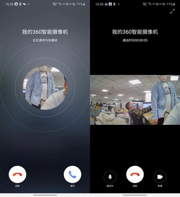 将视线向下,就可以看到一个绿色的拨号键,当触摸这个按键时,摄像头就会向App端发起视频通话邀请,接通后就可以与家人视频通话,这一功能比较适合家中有老人或者孩子的家庭,绿色的标识非常醒目,一键拨号也在极大程度上降低了学习和使用门槛,当家长上班后,孩子可以使用通话功能呼唤家长,摄像头也可以时刻监护孩子的安全。