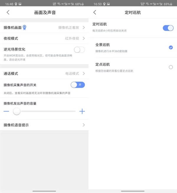 上文中提到360智能摄像机云台AI版标准款可以拍摄夜间彩色画面,这款产品拥有强大的夜视能力,在App中,用户可以根据自身需求选择增强红外夜视/微光全彩/昼夜全彩。开启“自动切换到红外夜视模式”后,当光线较暗时,摄像机会自动开启红外补光灯,拍摄黑白夜视画面;“自动切换到全彩夜视模式”,摄像机会自动开启白色补光灯,实现微光全彩画面,微弱光线下彩色画面依旧保持;此外还有“始终开启夜视模式”和“关闭夜视模式”可选,用户根据家中情况进行选择。360智能摄像机云台AI版标准款还拥有WDR自动调节,开启逆光场景优化后,可以大幅提升微光、弱光和逆光场景下画质,暗处也能看得清。