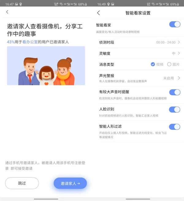 在家人相册中,可以开启我家的每日故事和时光相册功能,不但可以将家中的一天、一月、一年浓缩成温馨的视频,还可以将自动抓拍生成精彩的视频,成为最美好的回忆。对于新晋奶爸奶妈来说,其支持哭声叫声侦测,检测到儿童哭声或叫声时,摄像机会巡视并跟踪人形拍摄视频,同时微信授权后,“360摄像机”App和微信都能收到推送消息,可以通过微信推送消息,点击消息直接进入微信小程序查看,信息掌握更快一步。孩子入睡前,也能够使用摄像头为孩子播放睡眠音乐,辅助孩子睡眠。