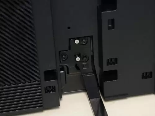 Z8H单机重量达到了47.9kg,为了电视摆放的可靠性,电视采用全金属材质的支撑底座,背部采用螺丝进行旋拧固定,整体的稳定性是非常好。