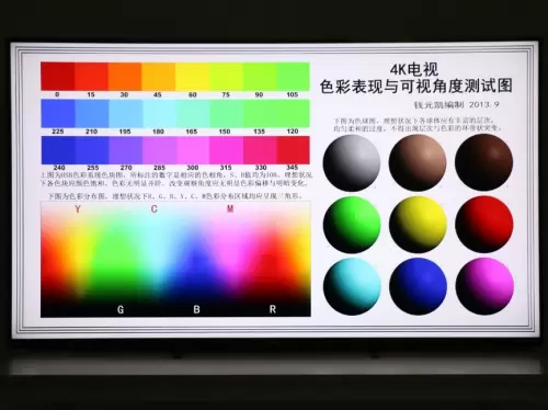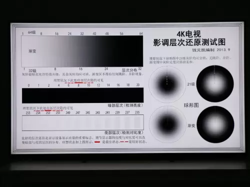 在色彩表现与可视角度测试图中,最难准确表达的就要数左下侧位置的HBS色彩过渡和色阶过渡区域了。索尼Z8H所表现的色彩层次与原图几乎毫无差别,尤其是在色阶部分的黄色显示区域,Z8H的表现已经远胜市面相当多的8K旗舰电视产品。