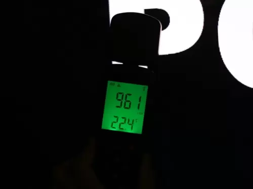 用亮度计实测黑白两个色块的亮度时,白色区域亮度达到了962Lux,而黑色区域则为0Lux。对液晶电视来说,黑色区域能够达到0Lux的数值绝对是非常厉害的,也说明了Z8H光控技术的优秀。