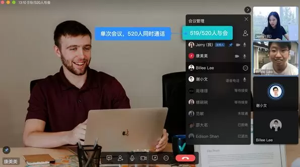 此次,百度Hi再次升级,将多人音视频会议这一刚需的同时在线人数提升至520人,成为业内支持最大规模在线音视频会议的在线办公平台。这一功能解决了企业、学校、政府对于大型在线会议的需求,适用于企业培训、大型线上公开课等多种场景。