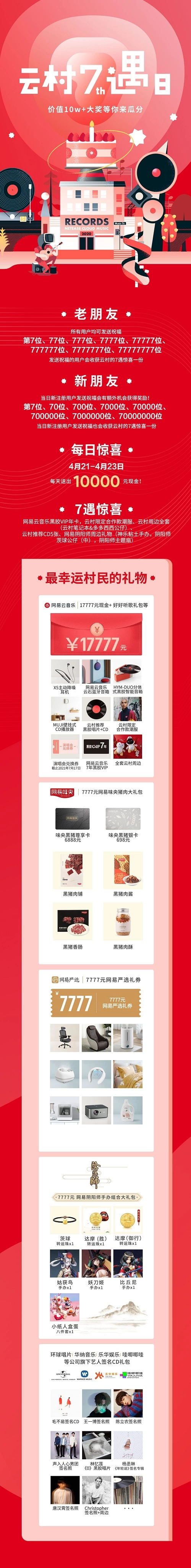 此外,云村社区、LOOK直播、音街、黑胶VIP、云贝商城等也均推出七周年系列活动。