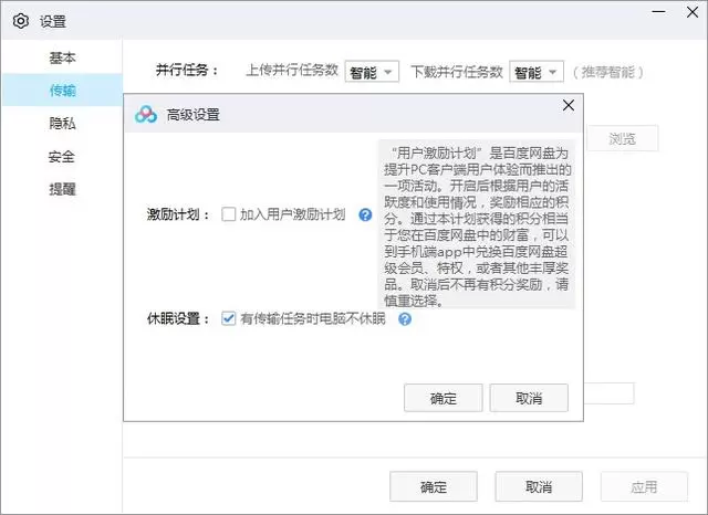 用户激励计划是百度用来提升百度网盘用户使用体验的行动,该计划使用点对点(P2P)传输技术,可提升网友观看视频以及提升PC端下载网速。用户参与该计划,可以获取一定的积分奖励,用以兑换爱奇艺会员、下载券等服务。