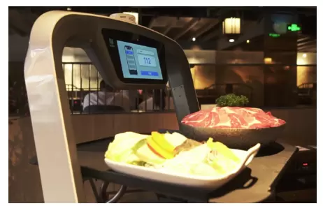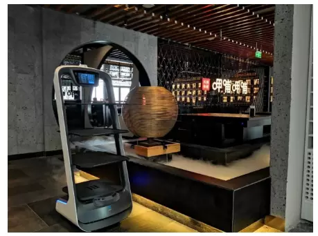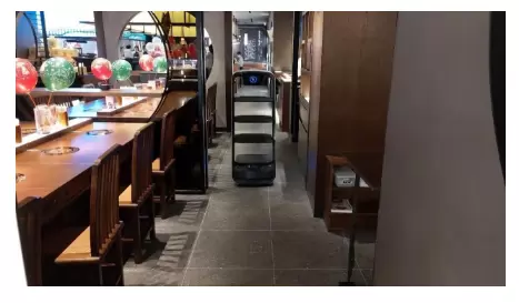 在堂食方面,机器人配送也省略了服务员传菜的中间环节,从后厨到顾客餐桌仅经由机器人配送,顾客也更放心。