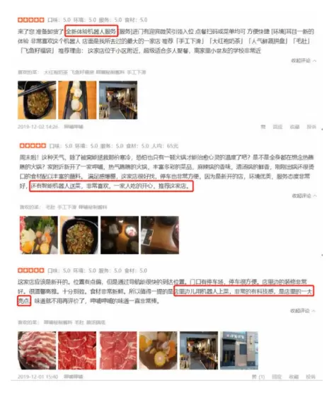 另外,在大众点评上,使用机器人与否的餐厅评论风格也截然不同,在服务一栏的评价有40%顾客都会提到机器人,整体好评率也大大提升。