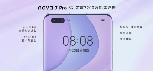 刚刚发布的华为nova7系列全系支持5G网络,采用挖孔异形屏设计,还有主流的麒麟处理器、屏幕、存储配置和明快的色彩设计,2020年的手机流行元素应有尽有。作为其中顶配版本的华为nova7 Pro,更是采用了前置3200万像素人眼追焦镜头+800万像素超广角镜头的双摄组合,把手机的自拍功能推到了一个全新的境界。