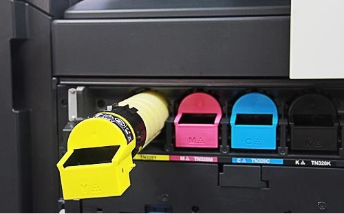 全新的碳粉盒手柄颜色配置及直推式卡槽设计