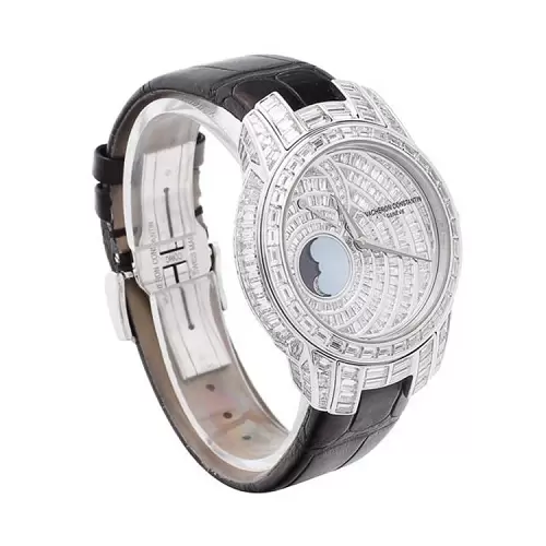 这款江诗丹顿的传袭系列的腕表 通体采用T形方钻镶嵌,170颗T形方钻将整个表壳镶满,可谓极致奢华。