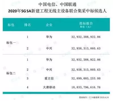 4月24日晚,备受关注的中国电信和中国联通2020年5GSA新建工程无线主设备联合集采落地:华为、中兴、爱立信、大唐入围。这是继中国移动5G招标结束之后,又一个超级重量级的集采招标。从结果上来看,本次中标设备商和中国移动二期集采的5G设备商也基本一致,华为、中兴中标意料之中,海外设备商爱立信再次中标,基于中标排名和标包设计,此次将赢得10%左右的份额,大大超越了4G时代5%的市场份额,持续做大了5G市场格局,成为了最大赢家。大唐移动凭借多年对TDD技术的投入,首次喜获电联5G大单,令人瞩目。然而,诺基亚因又一次遭遇出局,也让业界倍感遗憾。