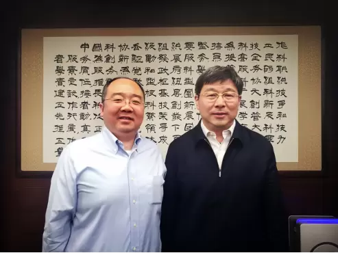 中国科协党组成员、书记处书记束为(右)