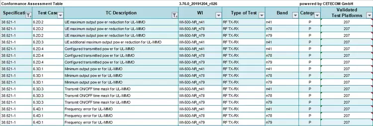 星河亮点独家提交认证的 5G UL MIMO 射频一致性测试用例(部分截图)