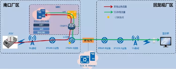 2019年在三一重工北京南口厂区完成了5G网络覆盖及MEC平台部署,实现智能网联云化AGV的应用落地。同时,在南口厂区和回龙观厂区之间建立5G网络专线,可在回龙观厂区远程实时观察南口厂区AGV生产运行情况。