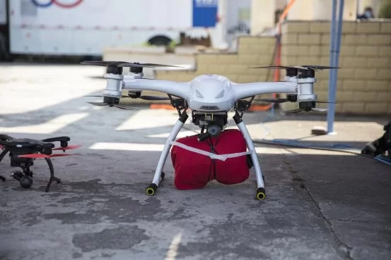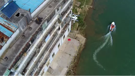 亿航天鹰AAV向受灾群众精准投送救生衣