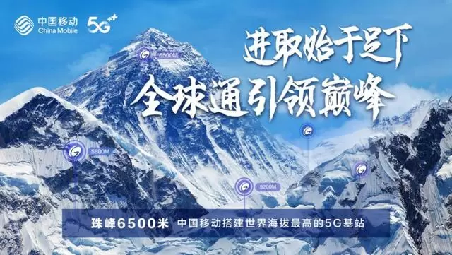 2020年,中国移动在珠穆朗玛峰6500米处开通全球海拔最高的5G基站。