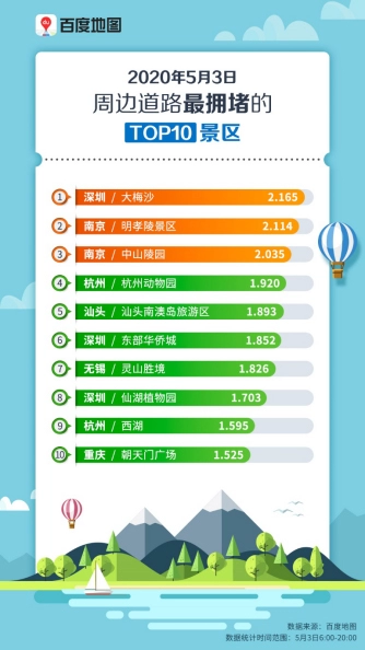 (百度地图“5月3日周边道路最拥堵的TOP10景区”)