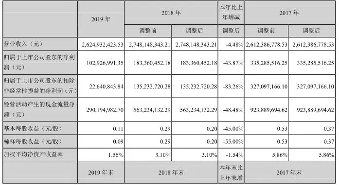 数据显示,2019年湖北广电网络共实现营业收入为26.25亿元人民币,与2018年相比较减少了4.48%;归属于上市公司股东的净利润为1.03亿元人民币,与2018年比较减少43.87%。