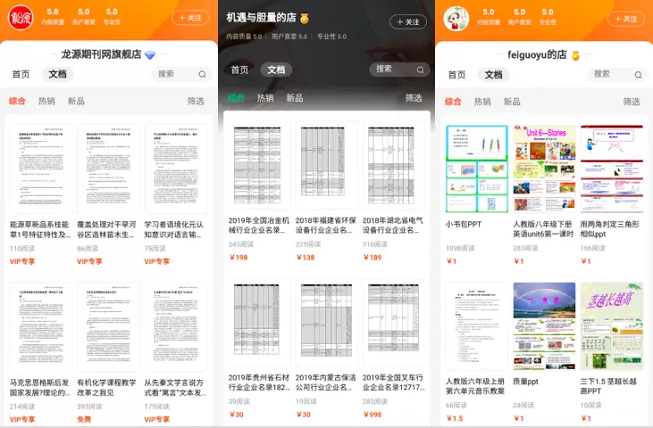 以全球最大中文杂志在线阅读网站“龙源期刊”知识店铺为例,龙源期刊2014年入驻百度文库,在平台分享800万篇文档,五年间,龙源期刊总下载量超过500万次,总收入超千万元。与此同时,更多的PGC生产用户也纷纷入驻知识店铺,“机遇与胆量的店”、“feiguoyu的店”,均有不错的成单收入。