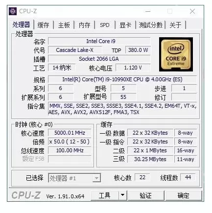 这次的英特尔酷睿i9十代带“X”后缀的处理器中,依旧是热设计功耗都达到了165W。而其中的英特尔酷睿i9-10990XE拥有22核心44线程,且功耗居然高达380W!