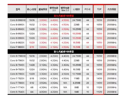 众所周知,往年的英特尔酷睿“Skylake-X”发烧家族中功耗最多也不过165W。且网上不少玩家在对这类处理器进行评测时,温度控制方面一直都是个考验。