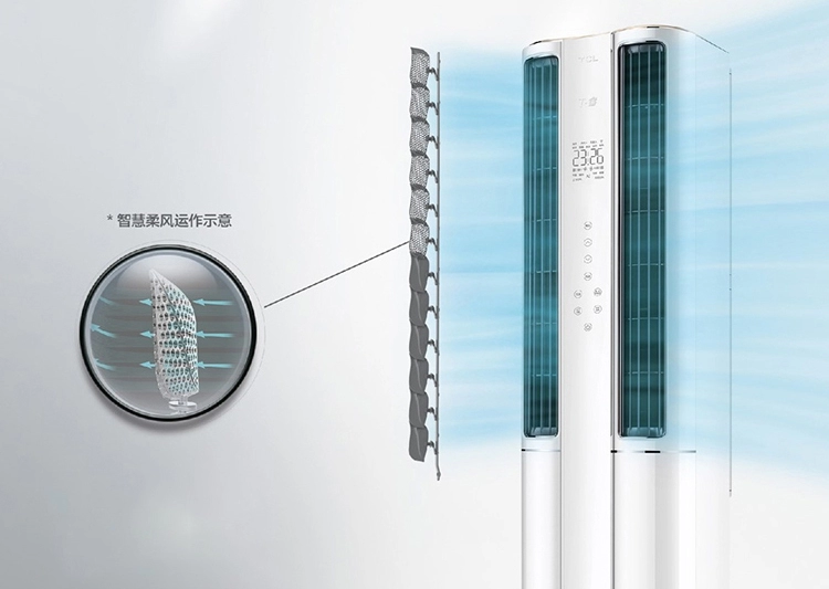 TCL柔风空调的奥妙在于出风口的柔风叶片,一般空调出风口的叶片只有引导风向的作用。而 TCL柔风空调的柔风叶片上则布满了多个密集的微孔,当开启柔风模式后,冷风就会先通过这些微孔,被打散成柔和的软风,达到“有凉意,无风感”的效果。