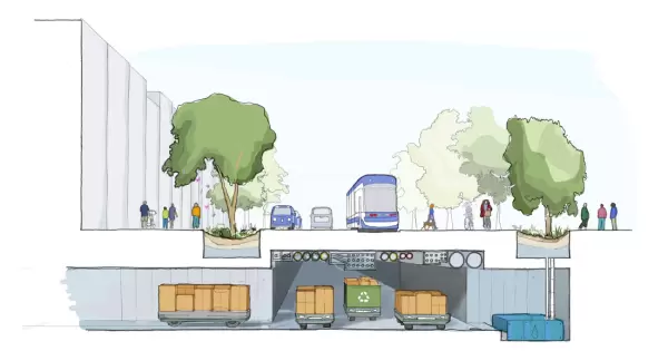 Sidewalk Labs希望建立一个地下隧道网络来处理所有“最后一公里”服务的物流运输,而不是让街道上充斥着垃圾车和送货司机,这包括创造机器人来收拣和管理垃圾和货物的运输。而且,这些隧道也会覆盖未来的披萨外卖。