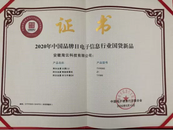 5月10日,在云上中国品牌日活动中,中国电子信息联合会发布了《2020年中国品牌日电子信息行业国货新品推广目录》,凭借强大的创新实力和过硬的技术表现,阿尔法蛋大蛋2.0、阿尔法蛋智能故事机Z1、阿尔法蛋学习手表G6成功入选“国货新品”。