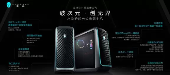 作为此次发布会重磅新品,新一代水冷游戏主机·雷神911黑武士三代,率先发布。全新Tron设计语言,承袭黑武士家族基因,贯彻光电美学,颠覆想象。Mobius环形灯带,覆盖机身,整面革新;满天星分子中网设计,类分子结构,散热增效;QI无线充电黑科技,行业首创,无线电力无线游戏;一键超频Button,物理触发,动力加速;跑车级漆面、隐藏式提手,无线升级!