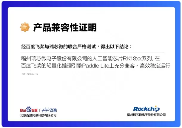 5月13日,瑞芯微Rockchip正式宣布,旗下AI芯片RK1808、RK1806适配百度飞桨(PaddlePaddle)开源深度学习平台,充分兼容飞桨轻量化推理引擎Paddle Lite。此次瑞芯微与百度合作,旨在为AI行业赋能更多应用场景,加速AI产品落地进程。