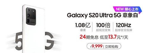 可以看出,三星Galaxy S20 Ultra 5G不仅仅是一台手机,更是可以PK单反的摄影神器和家庭娱乐的游戏神机。目前,三星Galaxy S20 Ultra 5G正在热卖中,更值得惊喜的是,其全新配色意象白刚刚上市,现在购买还可享受24期分期免息等多重优惠,入手三星Galaxy S20 Ultra 5G,让生活更有趣一点!