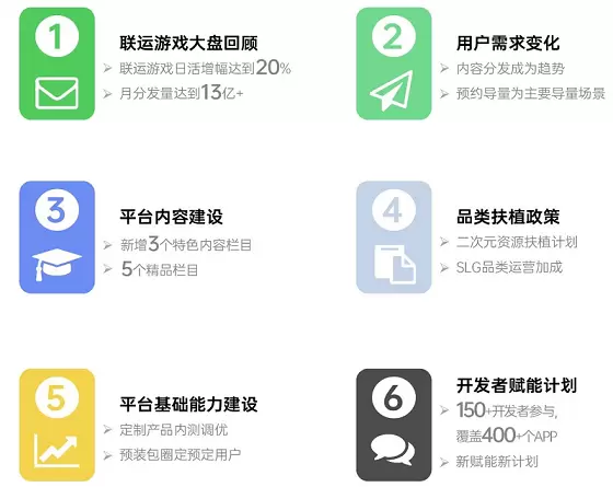 在品类扶持方面,OPPO联运游戏对二次元和SLG等优质资源品类做了一系列扶持。例如,二次元品类从首爆&预约开启、游戏测试、预约内容大事件、游戏首发4个节点切入,帮助合作伙伴前置运营,精准锁定核心用户。而对于SLG品类,则将会细分新老游和游戏大事件运营,进一步提高游戏分发的精准度。