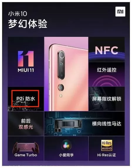 例如,多代小米手机均不具备IP68防水防尘的能力,但这一能力其实已经成为了目前旗舰机型的标配。到了2020年,小米终于加入了P2i防水功能,但是这种防泼溅的能力,相比于IP68那种可在1米以上的水中浸泡30分钟的能力还存在着差距。就如同在户外服装中不同的防水涂层,仅仅支持DWR防泼水的面料相比于能够抵御暴雨的GORE-TEX面料,在应对恶劣天气时的防水表现有着天壤之别,价钱上也有着巨大差距。而同一价格档位上的旗舰杀手一加8也没有支持IP68认证。
