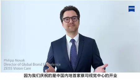 蔡司光学全球市场副总裁Mr. Rolf Herrmann 、蔡司全球视觉体验中心总监Mr. Philipp Novak送来视频祝贺。