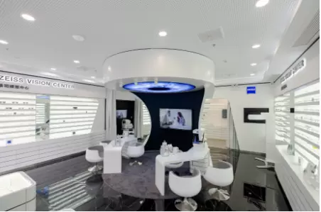 蔡司视觉中心·南京(东视店)依照荣获德国红点设计奖的蔡司全球设计标准打造,纯白基调的布局,简洁利落的线条,无处不体现蔡司特有的科技感、未来感。