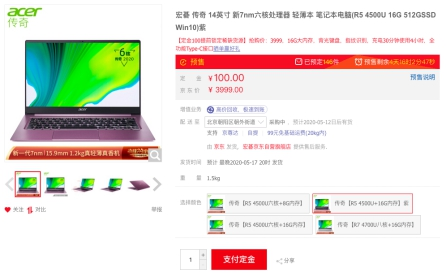 有颜又有料的宏碁传奇作为第一款搭载AMD 7nm移动处理器的轻薄本,凭借自身强大的实力也是颇受用户青睐。这款轻薄本在保持纤薄机身的同时,在性能方面也有了品质的飞跃。搭载锐龙5 4500U六核心处理器,使用180度全景微边框屏幕,带来更广阔的超清视野和身临其境似的使用体验;11小时超长续航以及快充功能,充电30分钟使用4小时,让你再也不怕长时间高强度办公。目前这款“真香”机型已在京东电脑数码开启预售模式,支付100元定金即可提前拥有,你还在犹豫什么?
