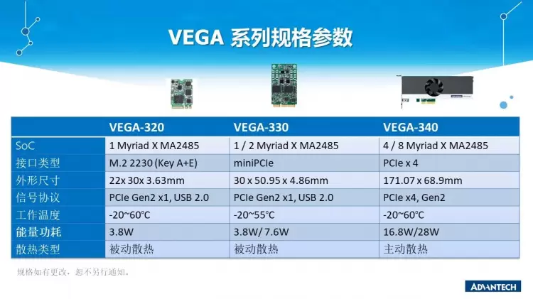 截至目前,研华Edge AI 加速卡VEGA-340已上市,除此之外VEGA-320、VEGA-330持续供货。