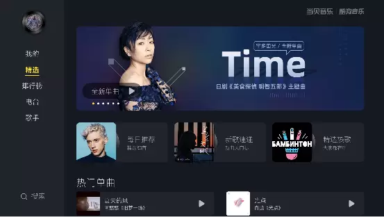 当贝酷狗音乐的UI基于TV端深度定制,并且专门针对电视大屏进行了优化,页面布局和操控逻辑完美贴合大屏用户使用习惯;在音乐内容上,当贝酷狗音乐拥有酷狗的海量正版音乐曲库的支持,基本涵盖了国内外绝大部分音乐版权,你喜欢的音乐这里全部都有;也继承了酷狗音乐app大数据基因,可根据智能算法为电视用户精准推荐高质量、高热度的音乐,保证用户随时随地听到最新最流行的音乐。