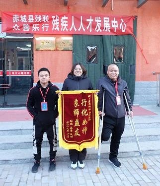 掌阅作书匠项目及众善乐行工作人员、北邮志愿者等与残疾人朋友合影
