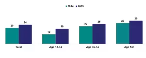 在国外,NPR和Edison Research的一项研究显示,2014到2019年这5年间,美国用户收听语言类音频的平均时长增加了20%。2019年,他们平均每天会花1小时收听语言类音频节目,包括新闻、体育和谈话类节目等内容。