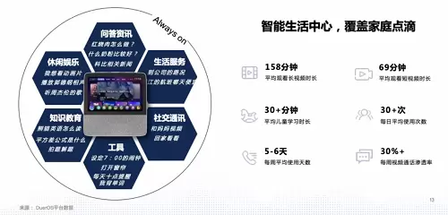 小度能够在行业逆风而行中实现唯一正增长,根源或许在于智能屏领域的抢先布局,以及在多模态交互下的用户高粘性、高活跃度。从19年12月至今,小度相继推出智能屏X8、智能屏Air、小度教育智能屏等系列产品,正在打破智能音箱边界,满足用户更多需求。据悉,用户每日平均使用小度次数超过30次,平均观看长视频时长达158分钟,平均观看短视频时长69分钟,儿童学习平均使用时长超过30分钟,“小度小度”早已成为了千万家庭中的重要成员。