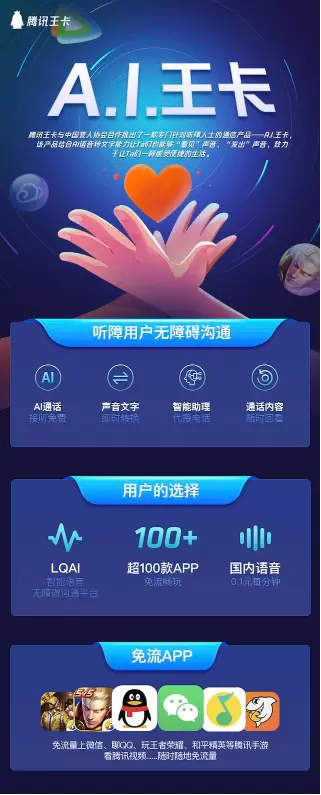 只有最用心的打磨,方不负善心的良苦等待。据了解,A.I.王卡集结了中国联通腾讯合作运营中心和中国无障碍沟通实验室的尖端技术专家,历时一年匠心研发。产品融合了5G与AI技术,以人工智能机器学习为核心,以通信网、互联网和神经网三网合一为桥梁,针对听障人士的电话沟通需求,构建了具备AI语音和文字互换能力的语音智能开放平台。听障人士通过平台小程序直接拨号直达对方手机,再凭借中国联通5G网络低时延、大带宽、广链接的特性,实现文字、语音的实时转换,从而帮助听障人士"看见"声音、"发出"声音,实现无障碍通话交流。更值得一提的是,听障人士在得到平台的残障人士身份认证之后,还可享受"关爱行动"提供的差异化权益服务。