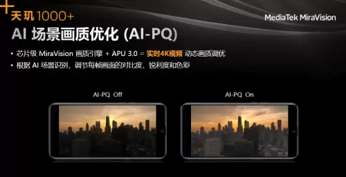 有一点值得重点关注,天玑1000Plus的“MiraVision 画质引擎”增加了独立AI处理单元APU 3.0,根据AI场景识别动态调节每帧画面的对比度、锐利度和色彩,实时进行4K 视频的逐帧画质调优。同时通过逐帧优化视频画面的动态范围和图像细节,让原生4K HDR10+视频画质更加生动逼真,色彩呈现更细腻,画面层次更丰富。另外,还可以高效完成 4K 画面的实时分区运算,大幅度提升视频画面的对比度、亮度、细节以及清晰度,获得超越HDR10+的体验。简而言之,就是最大程度提升5G终端画质,对游戏、影音娱乐、甚至是对后期的AR、VR娱乐画质体验做出极大提升。