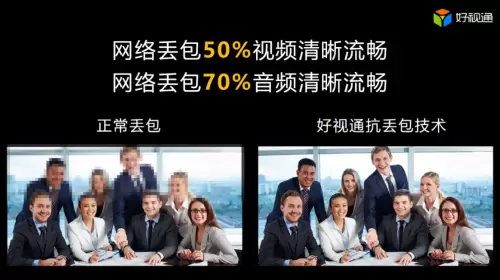 除此外,针对互联网普遍的丢包情况,齐心好视通具备丢包检测、重传、修复以及动态冗余纠错的抗丢包技术,在网络丢包50%的情况下保证视频清晰流畅,在网络丢包70%的情况下,仍能保证音频清晰流畅。通过齐心好视通提供的平台专属链接和二维码,用户可直接将会议链接分享至QQ群、朋友圈等,实现客户邀请、活动推广等形式的会议宣传。