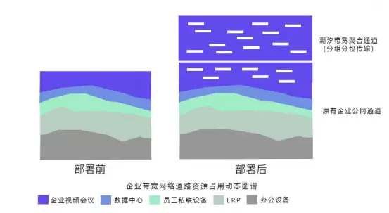 随着各行各业加速数字化、智能化,大数据量的流媒体信息、海量数据流传输必然要求接入的网络带宽持续升级。但由于公网大数据流传输具有潮汐变化的特性,高峰期带宽需求大,单纯的带宽扩容成本高昂且极易造成带宽资源在平峰期的浪费。