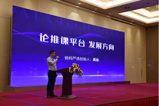 爸妈严选创始人吴总,在会议上分享了”论推课平台的发展方向“,提出了作为推课平台,需要深刻洞察家长的需求,挖掘合作课程的卖点和优势。受疫情影响,整个在线培训市场的份额会不断增大,未来推课平台深耕细分领域将会是有一定发展前景的方向。