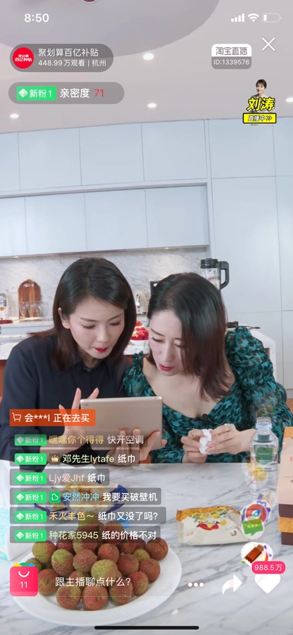 聚划算直播间超2100万人观看,刘涛刘敏涛双涛成团出道