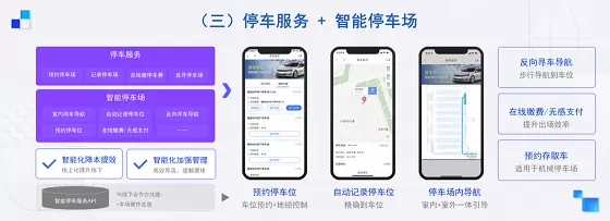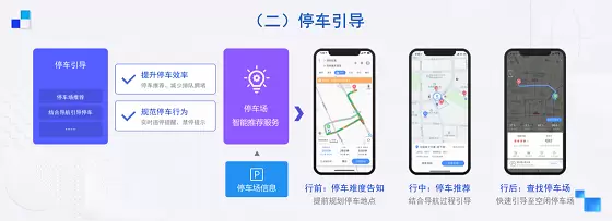 除信息互通外,资源合理调配同样是城市“停车难”的核心难点。对此,百度地图在海量停车数据的基础上,将停车服务与智能停车场相结合,推出了预约停车位、自动记录停车位、停车场内导航、反向寻车导航等功能,有效加强停车场的智能化管理,助力实现降本提效。智能停车管理平台则提供了宏观解决方案,通过停车情况监控、停车场选址工具、违章协管、违停提醒及城市定制化服务等功能,完善城市停车资源规划,实现动态化数字管理。