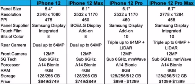 5月19日早间消息,据外媒macrumors报道,DSCC屏幕分析师罗斯·扬(Ross Young)分享了2020年iPhone12产品线所有型号的屏幕报告。