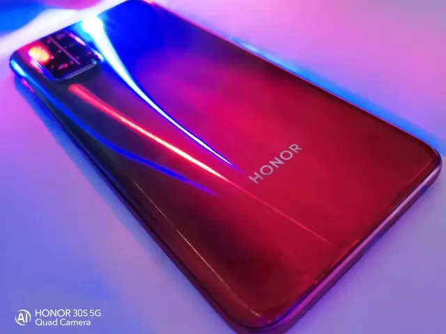 国内知名时尚网站瑞丽网对此表示:"通过全新的双层膜片工艺,将浪漫的极美颜色和灵动的全息光纹完美融合在一起,让手机机身呈现出了绚丽迷人的红蓝色彩。"可以发现,荣耀30S的红蓝色,一方面保留了红蓝色的特性,仍然极具冲击力与想象力,放大了颜色的戏剧色彩。另一方面,又因其蝶羽光效不只是红蓝色,在矛盾中充满灵动的协调美感,不同角度、不同光线环境可以发现不同的美,而这些不同又完美的融合为一。